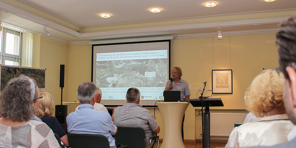 Im Rahmen einer Präsentation zeigten Matthias Wedepohl, Projekt M GmbH, und Patrick Wiederanders, ICL Ingenieur Consult GmbH, die mit der Entwicklung von Strategien und Zielen von Leipzig und Leuna beauftragt sind, erste Ergebnisse und zukunftsweisende Ideen zum Projekt. So steht nicht die schiffbare Verbindung des Kanals von Leipzig nach Halle auf dem Plan, sondern die Entwicklung und Profilierung des vorhandenen Kanals und seines Umfeldes. Konkret geht es darum, was mit dem jetzigen Ausbaustand des Kanals erreicht und wie der Saale-Elster-Kanal als Identitätsträger länderübergreifend genutzt werden kann.
