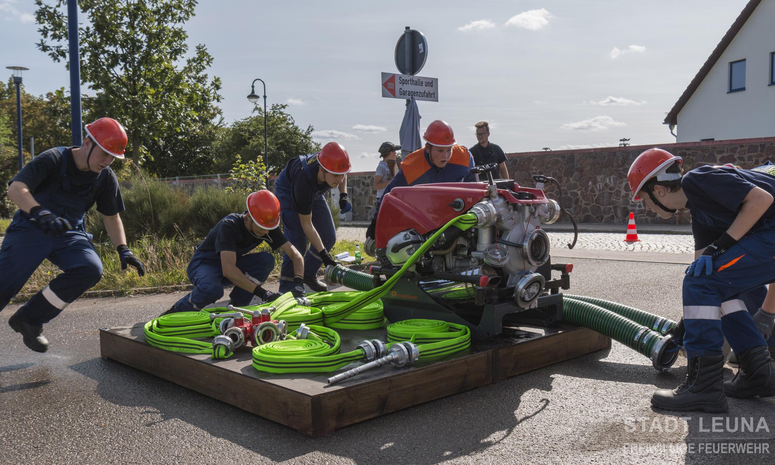 Am 30. September 2023 war es wieder so weit. Der 24h-Dienst der Jugendfeuerwehr Leuna stand an. Pünktlich um 9:30 Uhr ging die Veranstaltung mit insgesamt 14 Jugendlichen und 10 Betreuern los. Nach einer kurzen Belehrung wurde der Vormittag genutzt, um im Stationsbetrieb die Themen, Gruppe im Löscheinsatz, Knotenkunde, Erste Hilfe und Schläuche ausrollen, abzuarbeiten. Nach diesem abwechslungsreichen Programm gab es eine Stärkung mit Nudeln und Tomatensoße.