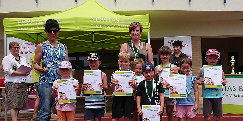 Untersützung erhielten die Mitarbeiter der Novitas von der Stadt Leuna, die kostenlose Getränke für die Kleinen bereit stellte. 20 Schülerinnen und Schüler der Pflegefachschule des Asklepios-Klinikums Weißenfels unterstützten das sportliche Event personell, regionale Unternehmen sponserten die Medaillen, Urkunden und Preise.