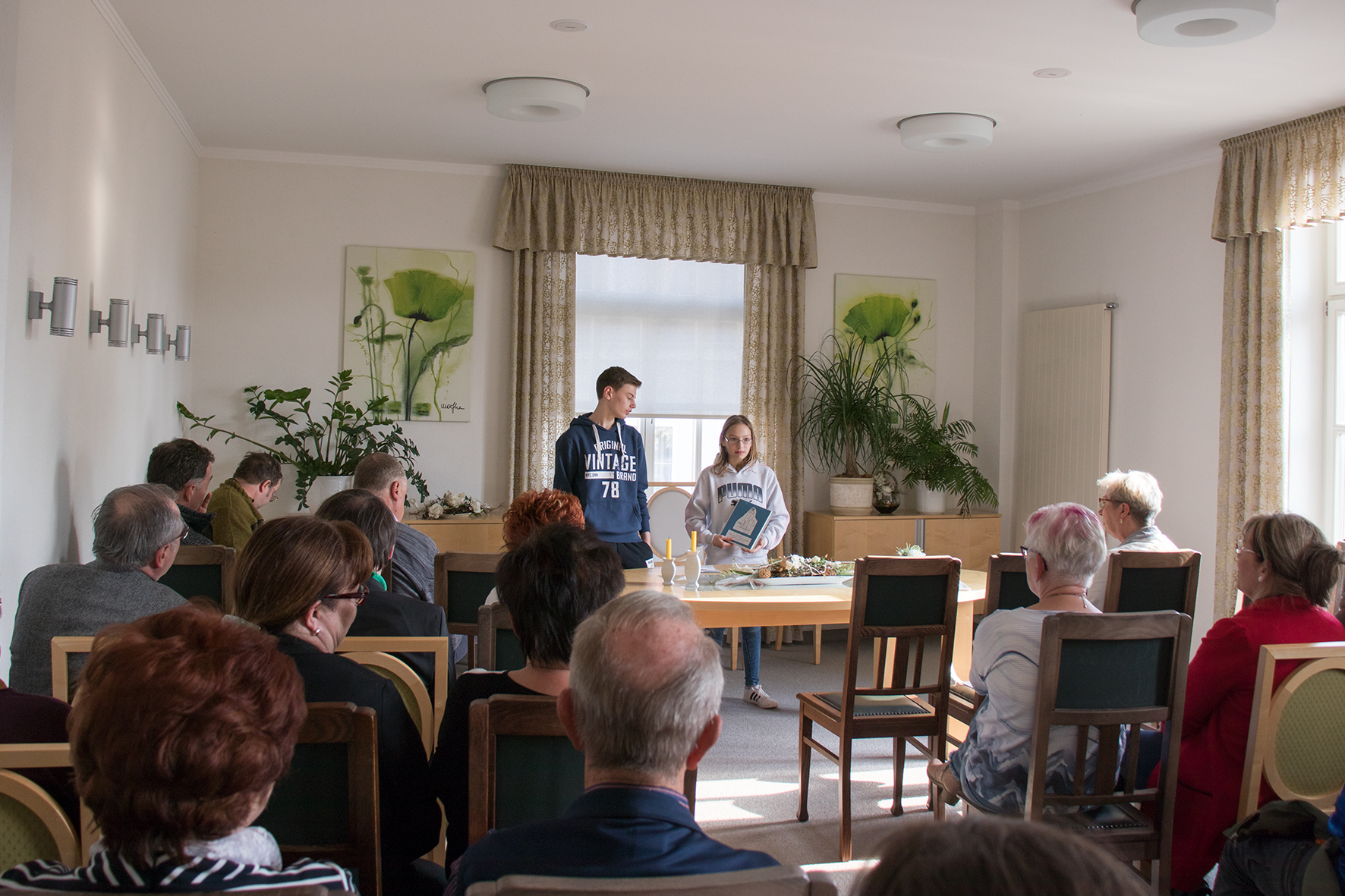 Bürgermeisterin Dr. Dietlind Hagenau eröffnete die Ausstellung vor rund 40 Gästen. Schülerinnen und Schüler der Johann-Gottfried-Borlach-Sekundarschule Bad Dürrenberg und der Sekundarschule "Albrecht Dürer" Merseburg vor stellten ihr gemeinsames Projekt „Denkmal aktiv“ vor. Beide 7. Klassen nahmen an einem Stadtrundgang mit Stadtarchivar Dr. Ralf Schade teil und entwickelten dabei ihre Projektideen. Die Merseburger Jugendlichen fotografierten in der Gartenstadt und zeichneten anschließend im Kunstunterricht die verschiedenen Gebäude. Dies sei sehr spannend gewesen, sagte Michelle Valenta aus der 7a. Die Zeichnungen haben die Schülerinnen und Schüler in einer Mappe zusammengestellt. Beatrix Weißflog, Kunstlehrerin aus Bad Dürrenberg, hatte zwei Modelle von modernen Gartenstadthäusern mitgebracht. Diese haben ihre Schüler ebenfalls im Unterricht gebaut und dabei viele eigene Ideen einfließen lassen. Fertig seien die Häuser noch nicht, die Schulklasse arbeite noch weiter daran.