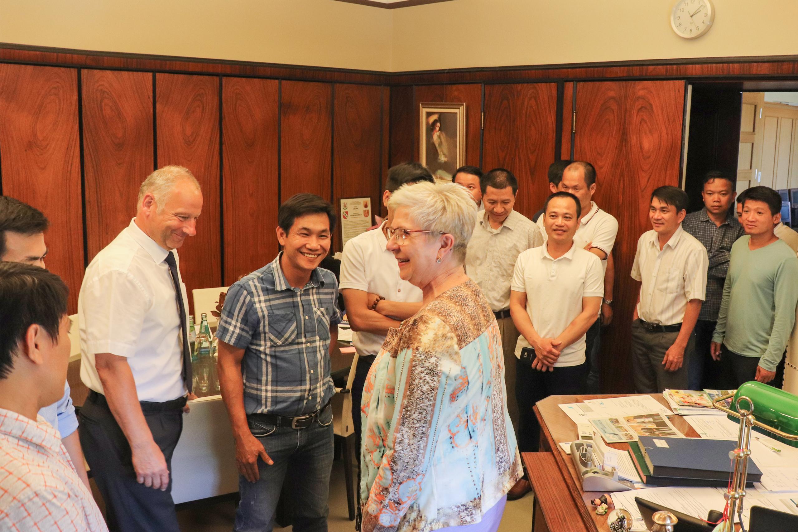 Am 24. Juni 2019 begrüßte Bürgermeisterin Dr. Dietlind Hagenau zwölf Gäste aus Vietnam im Ratssaal des Rathauses. Hintergrund ist die ständige Reformierung der vietnamesischen Bildungspolitik. Dabei orientiert sich Vietnam am deutschen Bildungssystem, insbesondere auch bei der Berufsausbildung. Die Vietnamesen, die nun für fünf Monate in Leuna Zuhause sind, sind bereits alle Berufsschullehrer. In Leuna werden sie an der Bildungsakademie in den Berufen des Anlagenmechanikers und des Industriemechanikers aus- bzw. weitergebildet.