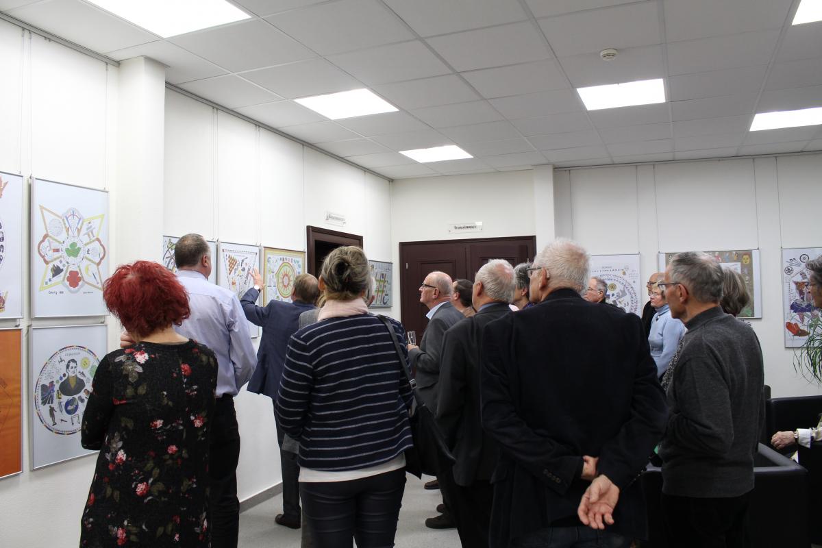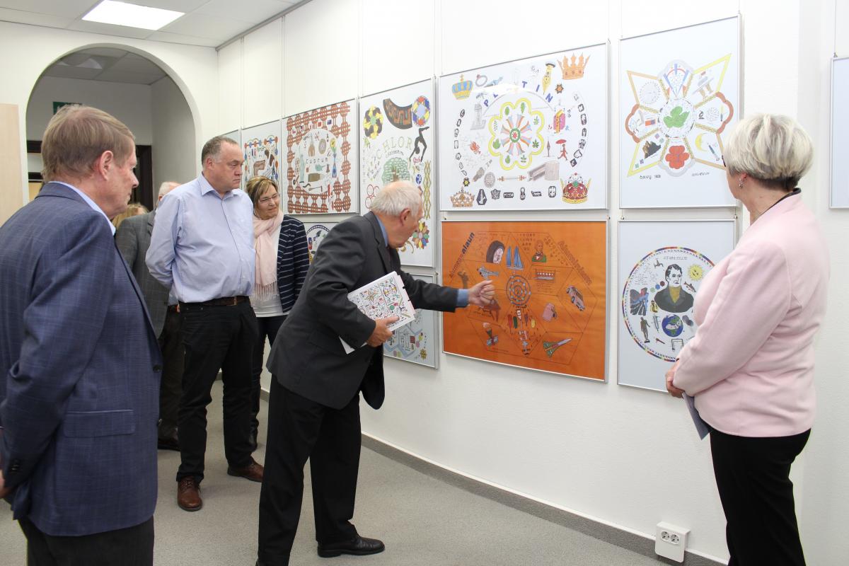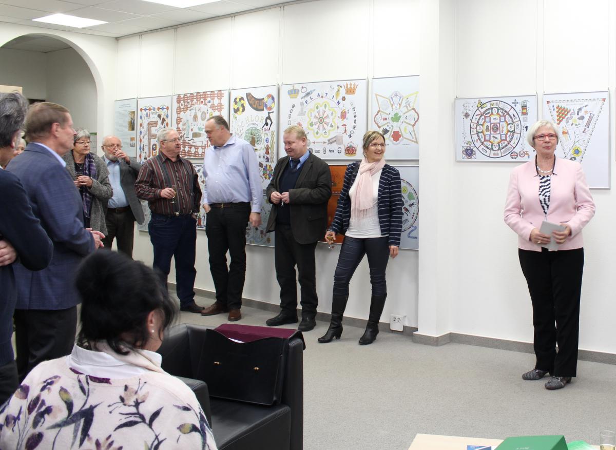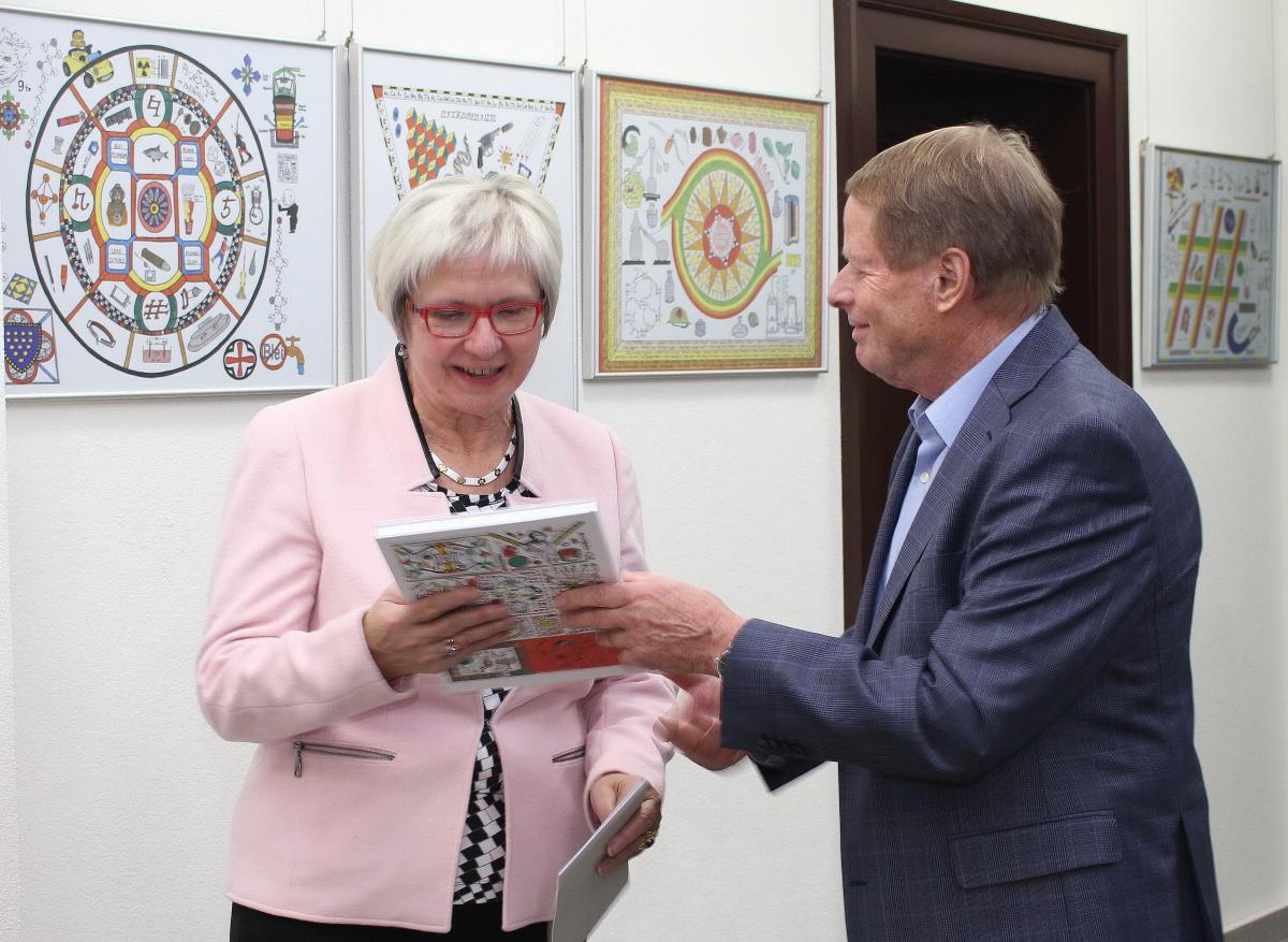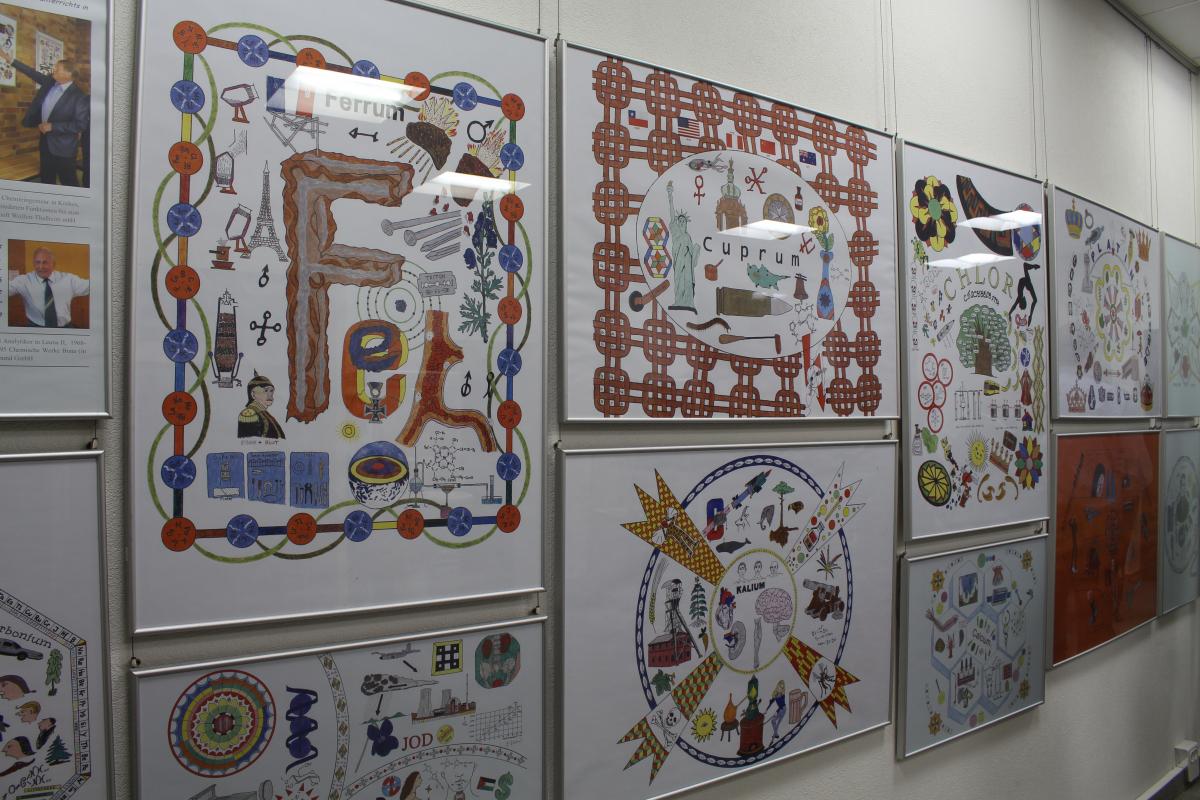 Eine neue Ausstellung im Foyer des Rathauses eröffnete Bürgermeisterin Dr. Dietlind Hagenau am Dienstag, 9. Januar 2018. Unter dem Titel „Malerei zum Periodensystem der Elemente“ stellt Dr. Jürgen Dunkel, Chemiker und Mitglied im Verein Sachzeugen der Chemischen Industrie (SCI) Zeichnungen zu einem ungewöhnlichen Streifzug durch die Chemischen Elemente aus. Ein gleichnamiges Buch kann im Rahmen der Ausstellung, die bis zum 9. Februar 2018 zu sehen ist, eingesehen werden. Es hält Hintergrundinformationen zu den Ideen, die der Chemiker in bunten Farben auf Papier gebracht hat, bereit.