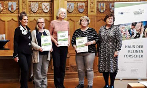 Am Montag, den 14.10.2019, erhielt die Kita "Sonnenplatz" zum dritten Mal die Plakette „Haus der kleinen Forscher“ von der gemeinnützige Stiftung "Haus der kleinen Forscher", die vom Bundesbildungsministerium gefördert wird, in Halle verliehen.