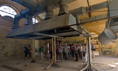 Nach einer Kaffeepause erreichte die Reisegruppe gegen 10:30 Uhr das Gelände der Heilstätten in Beelitz. In drei Gruppen wurden die Teilnehmer über einen kleinen Teil des Geländes geführt. Dabei erklärten die Guides Wissenswertes zur Geschichte der Gebäude und rund um den Alltag der damaligen Patienten der Heilstätten. Die sehr fortschrittlichen Anlagen wurden zwischen 1953 und 1998 als Fachklinik für Lungenkrankheiten und Tuberkulose in zivil genutzt. Die Patienten sollten sich vollständig auf ihre Heilung konzentrieren. So wurden großzügige Parkanlagen und Sonnenbalkons angelegt.