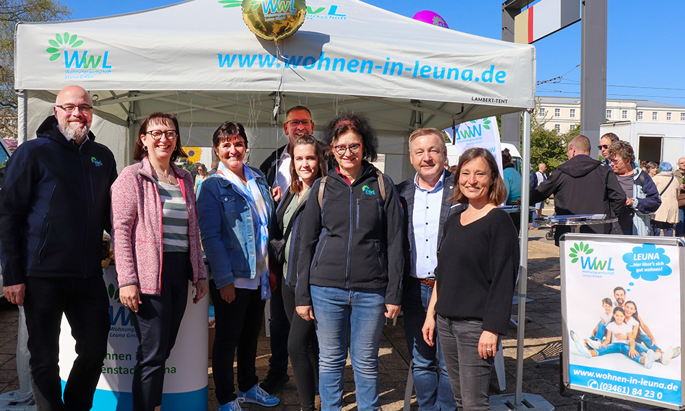 Zwischen den Auftritten begrüßte der Bürgermeister Michael Bedla zusammen mit Steffen Gebhardt, dem Geschäftsführer der Wohnungswirtschaft Leuna GmbH (WwL), die über 500 Gäste. Im Rahmen des Grünen Marktes feierte die WwL ihr 30-jähriges Firmenjubiläum. Die Mitarbeiter am Stand der Wohnungswirtschaft verteilten kleine Überraschungen an die geladenen Mieter. Zur Überraschung gehörte unter anderem eine Broschüre, welche über die Geschichte und die bisherigen Projekte der WwL informierte. Auch Laufkundschaft konnte Informationen zum bestehenden Wohnungsangebot sowie einen bunten Folienluftballon erhalten. 2025 sollen noch verschiedene Bauprojekte in z. B. der Friedrich-Ebert-Straße oder Gaußsstraße realisiert werden.