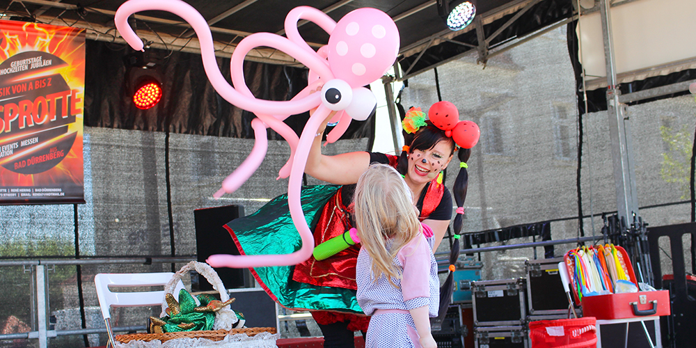 Am Vormittag luden die Akener Musikanten von „Ulis kleiner Blasmusik“ zum musikalischen Frühschoppen ein. Eltern, die mit ihren Kindern unterwegs waren, ließen sich später von „Peggy Balloni“ mit ihrem Programm für die Kleinen unterhalten. Allerlei Getier wurde aus Luftballons gezaubert. Besondere Aufgaben hatten sich die Mitarbeiter des Jugendfreizeitzentrums für Kinder und Jugendliche ausgedacht, hier konnte nicht nur gemalt oder gebastelt werden.