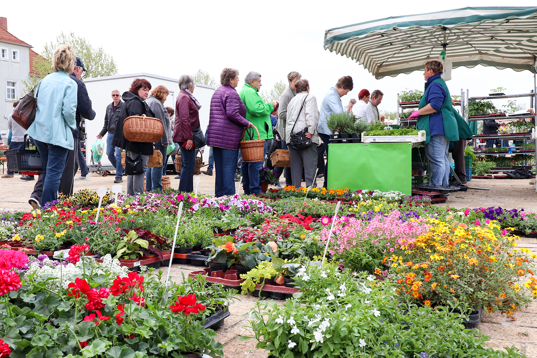 An den Ständen der Gärtnereien bildeten sich lange Schlangen, große Einkaufskörbe hat die Kunden bereits dabei, um Kräuter, Tomaten- und Blühpflanzen davonzutragen. Leider konnten in diesem Jahr nicht alle Gärtnereien, die sich schon frühzeitig für den Markt angemeldet hatten, teilnehmen. Durch Personalmangel und Krankheit waren die Geschäftsleute leider teilweise gezwungen, ihre Teilnahme kurzfristig abzusagen.