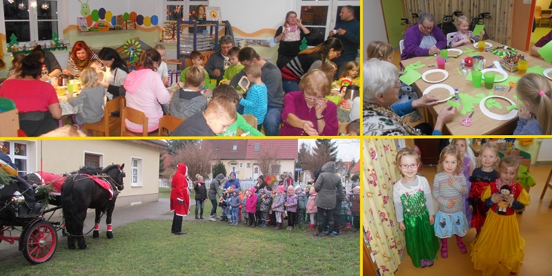 Zwei weitere besondere Höhepunkte waren die Besuche von einigen Bewohnern des Pflegeheimes Leuna in unserer Einrichtung. Mit den Kindern bastelten sie Fensterschmuck für ihre Einrichtung. Ein kleines Weihnachtsprogramm für alle Bewohner im Pflegeheim sorgte für einen gelungenen Jahresabschluss. Für 2018 stehen schon viele weitere gemeinsame Veranstaltungen fest.
