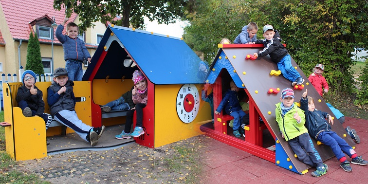 Wir Kinder der Kita "Am Sonnenplatz" freuen uns sehr über neue Spielhäuser und bedanken uns bei dem Träger der Einrichtung Stadt Leuna.