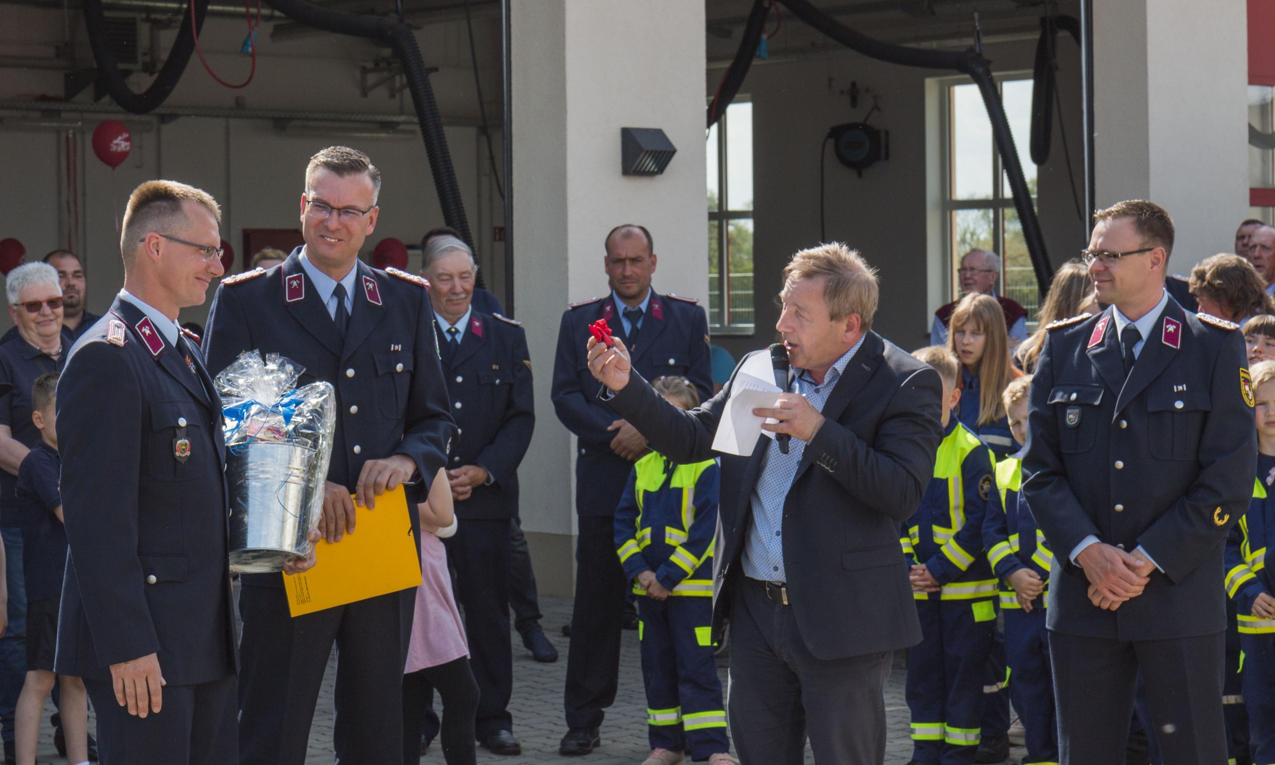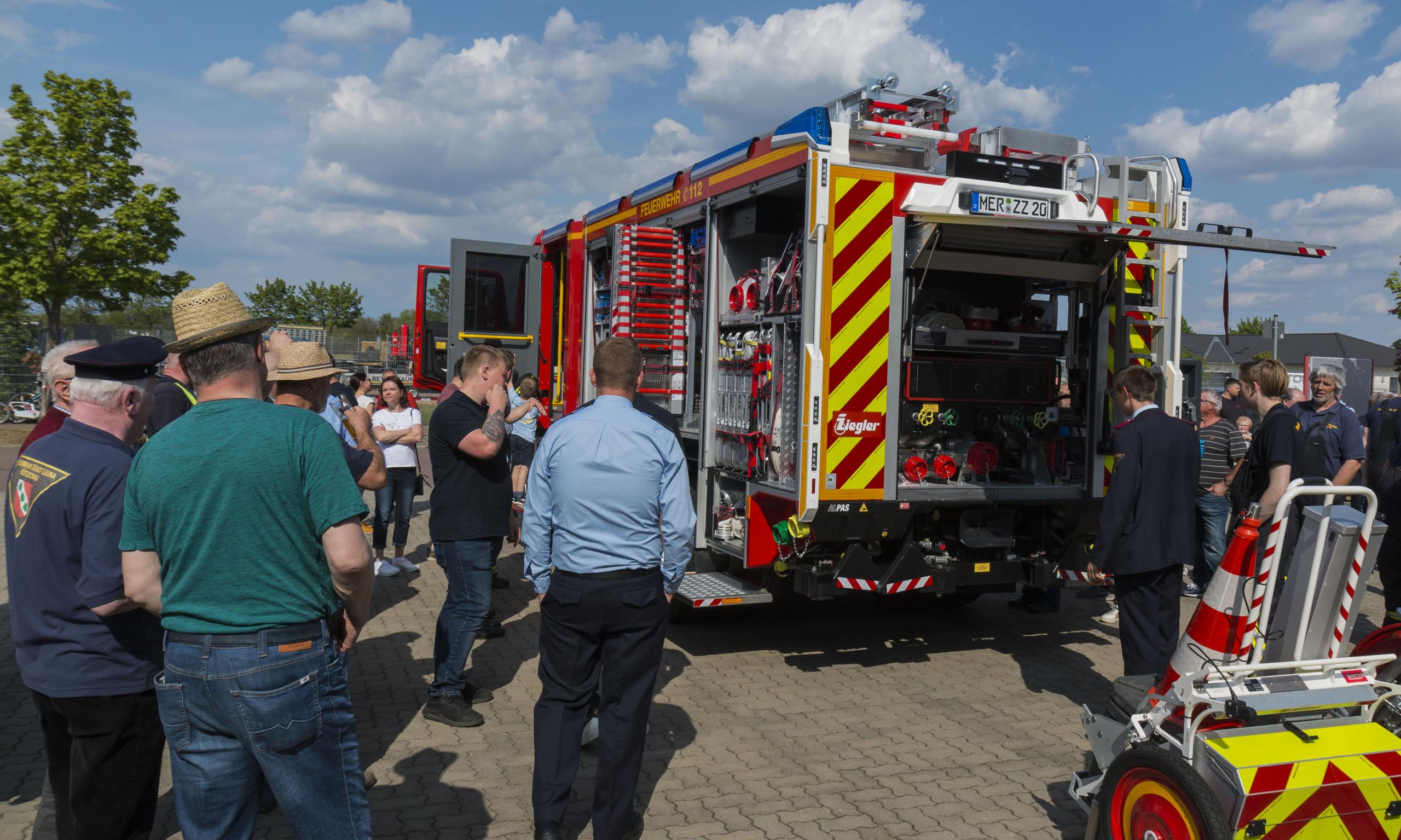 Am 7. Mai 2022 wurde das neue Hilfeleistungslöschgruppenfahrzeug (HLF 20) der Ortsfeuerwehr Zöschen-Zweimen offiziell in Dienst gestellt. Doch bevor die Gäste und Besucher das neue Fahrzeug bestaunen konnten, mussten sie sich etwas gedulden. Die Wartezeit konnten sie sich währenddessen bei Kaffee und Kuchen versüßen. Pünktlich um 15:30 Uhr wurde die Straße mit rotem Rauch vernebelt und dann war es endlich soweit. Aus der Nebelwand erschien das neue HLF 20 und fuhr auf dem Vorplatz des Feuerwehrhauses vor. Durch den zukünftigen Bürgermeister, Herrn Michael Bedla, und dem Stadtwehrleiter, Herrn Matthias Forst, erfolgte die offizielle Schlüsselübergabe an den Ortswehrleiter, Herrn Jan Schurig. Sie wünschten den Kameradinnen und Kameraden allzeit gute Fahrt, möglichst wenig Einsätze und immer ein gesundes Zurückkommen der Einsatzkräfte. Gleichzeitig dankten sie für die engagierte ehrenamtliche Arbeit. Durch die Pfarrerin, Frau Antje Böhme, wurde das Fahrzeug noch gesegnet.