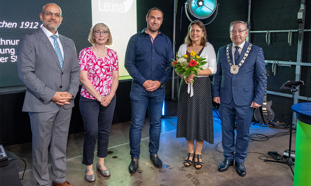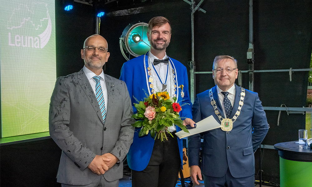 Höhepunkt der Veranstaltung waren die traditionellen Ehrungen verdienstvoller Bürgerinnen und Bürger. Die Auszeichnungen mit einer Ehrennadel erhielten in diesem Jahr Helga Gerlach, Andreas Heller, dessen Auszeichnung stellvertretend Maik Gutknecht entgegennahm und Dr. Ralf Schade, der seine Auszeichnung zu einem späteren Zeitpunkt erhält, da er am Abend eine Vortragsveranstaltung hatte. Mit einer Eintragung in das Goldene Buch der Stadt Leuna wurde der SV Zöschen 1912 e. V. ausgezeichnet.