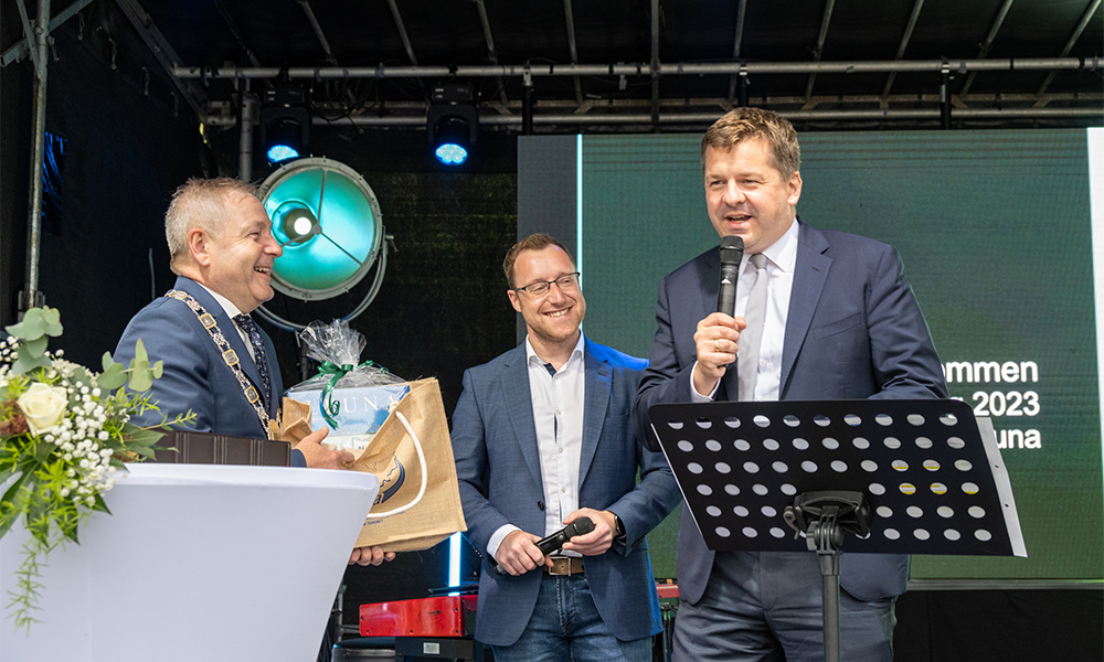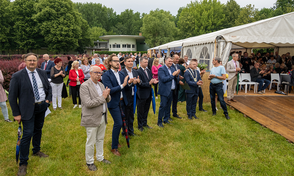 Bürgermeister Michael Bedla hatte am 7. Juni 2023 an einen besonderen Ort zum Jahresempfang eingeladen: das Waldbad Leuna. Rund 300 Gäste nahmen an dem in der idyllischen Anlage teil.