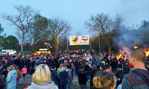 Zahlreiche Besucher strömten am frühen Abend des 30. April zur alten Rollschuhbahn in Leuna. „Endlich feiern wir wieder Walpurgis!“ war mehrfach zu hören.