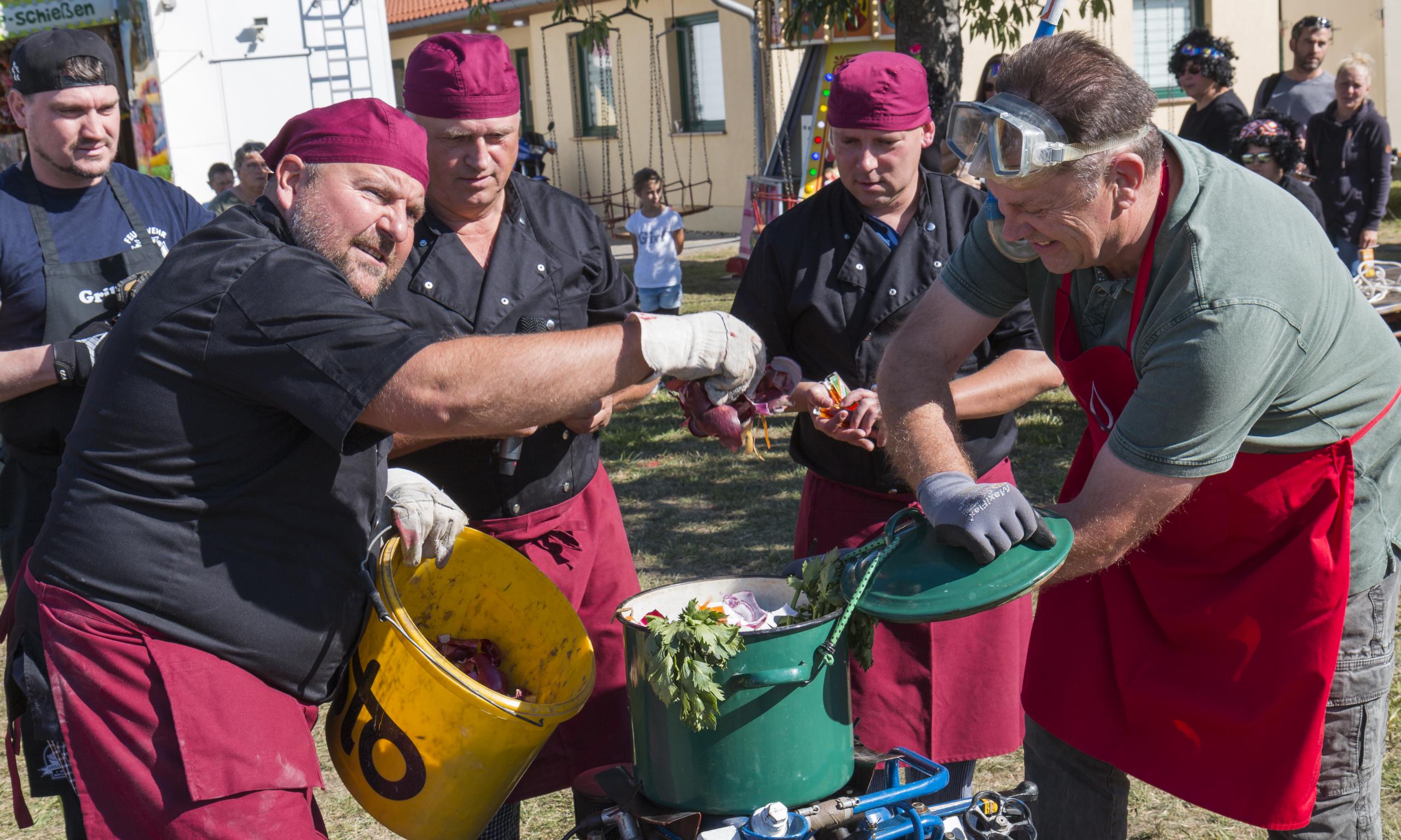 Für das leibliche Wohl war natürlich auch gesorgt. So bot der Förderverein der Feuerwehr Friedensdorf Gegrilltes und die Feuerwehr Wallendorf Erbensuppe sowie Nudeln mit Tomatensoße aus der Gulaschkanone an.