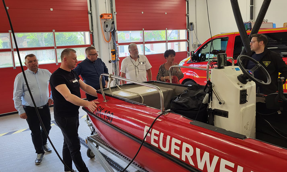 Peter Engel (Ortsbürgermeister Kreypau und Stadtrat) und Sven Störer (Ortschaftsratsmitglied Kreypau) luden die polnischen Gäste kurzfristig zur Besichtigung der Feuerwehr in Kreypau ein.