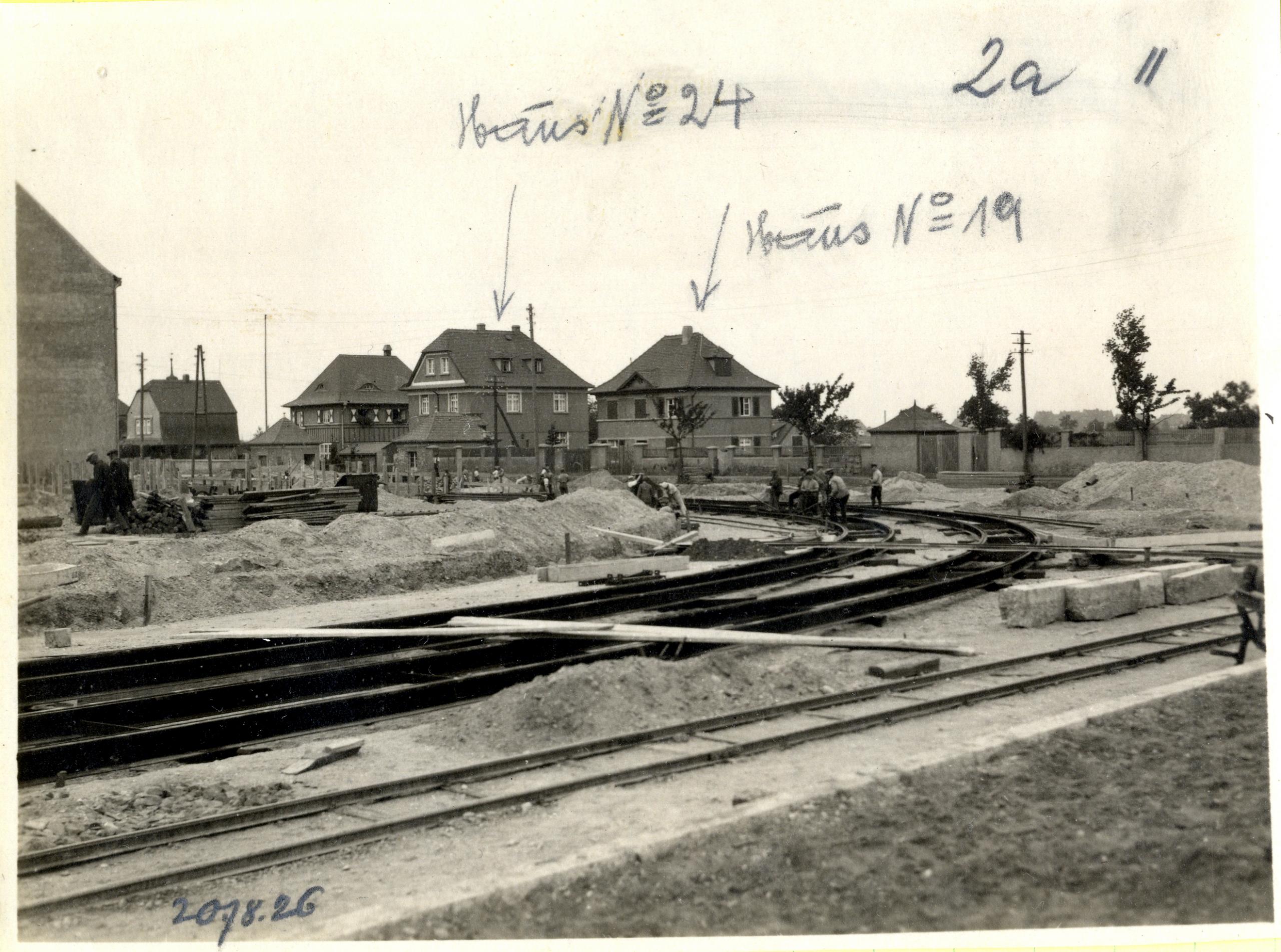 Foto: Gleisarbeiten im August 1926 am Industrietor. Aus: StA Leuna; Lichtbildsammlung Nr. 1859