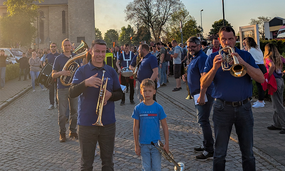 Pünktlich um 19:30 Uhr startete der Fackelumzug von der Freiwilligen Feuerwehr hin zum Veranstaltungsplatz. Angeführt und begleitet von den Musikanten der Spergauer Flachlandfinken zogen die jungen und älteren Fackelträger gemeinsam zum Platz, wo sich schon hunderte Schaulustige eingefunden hatten.
