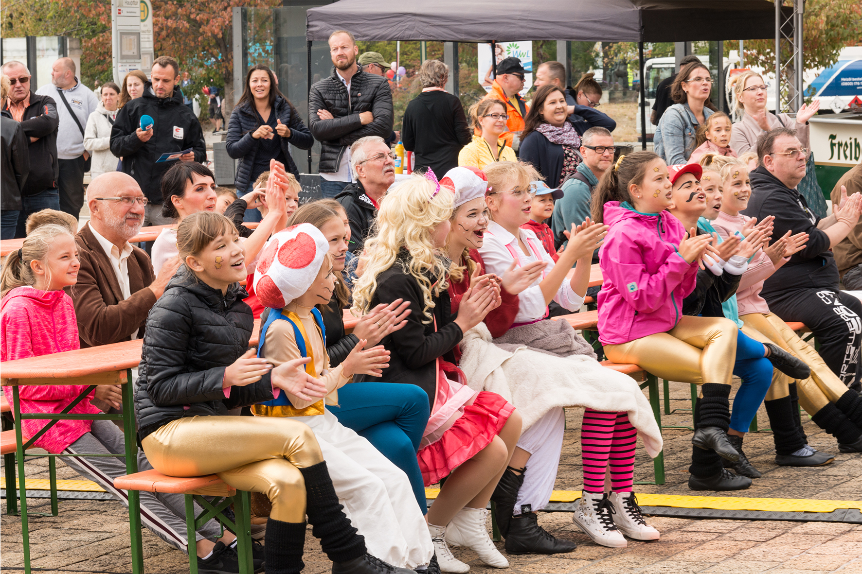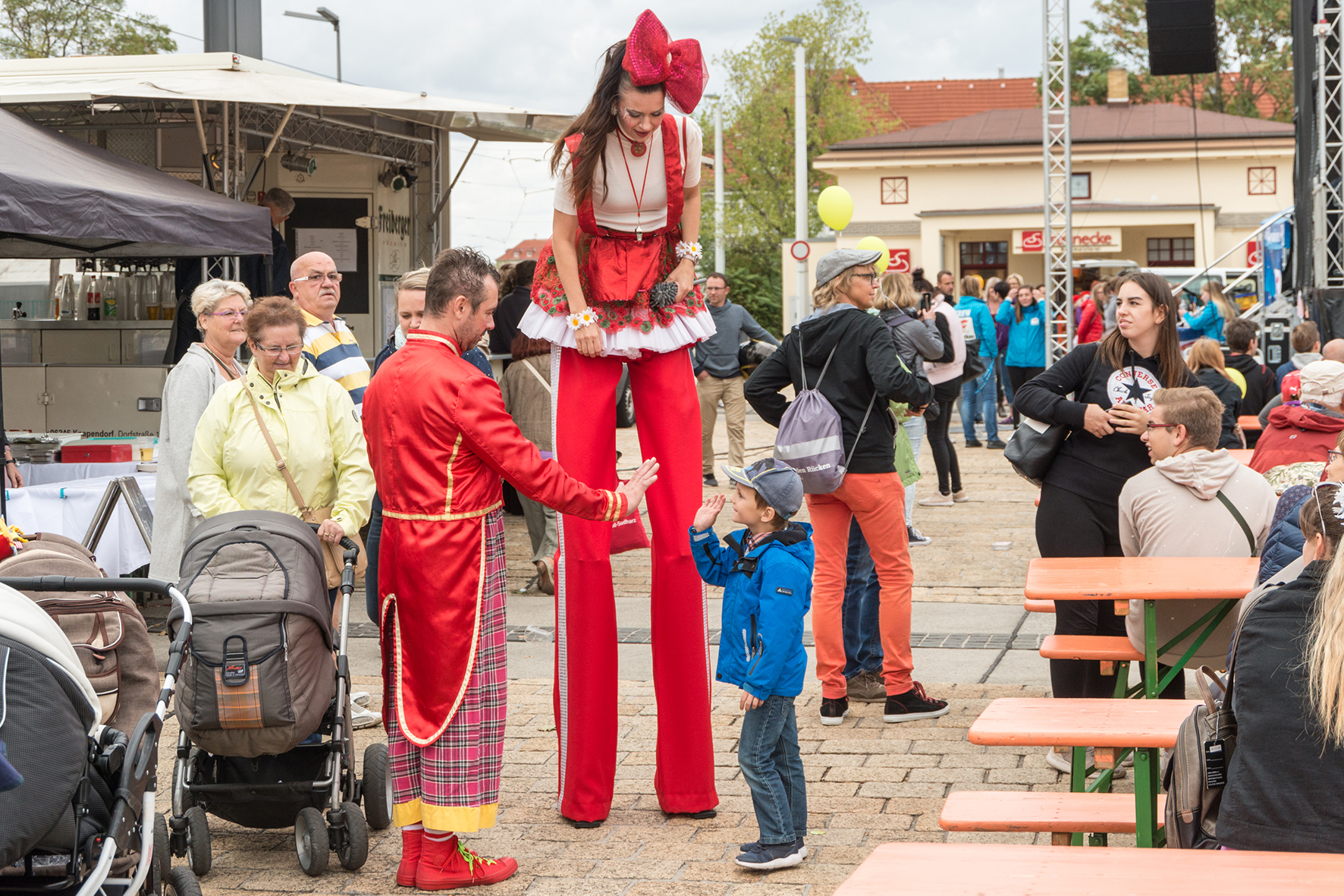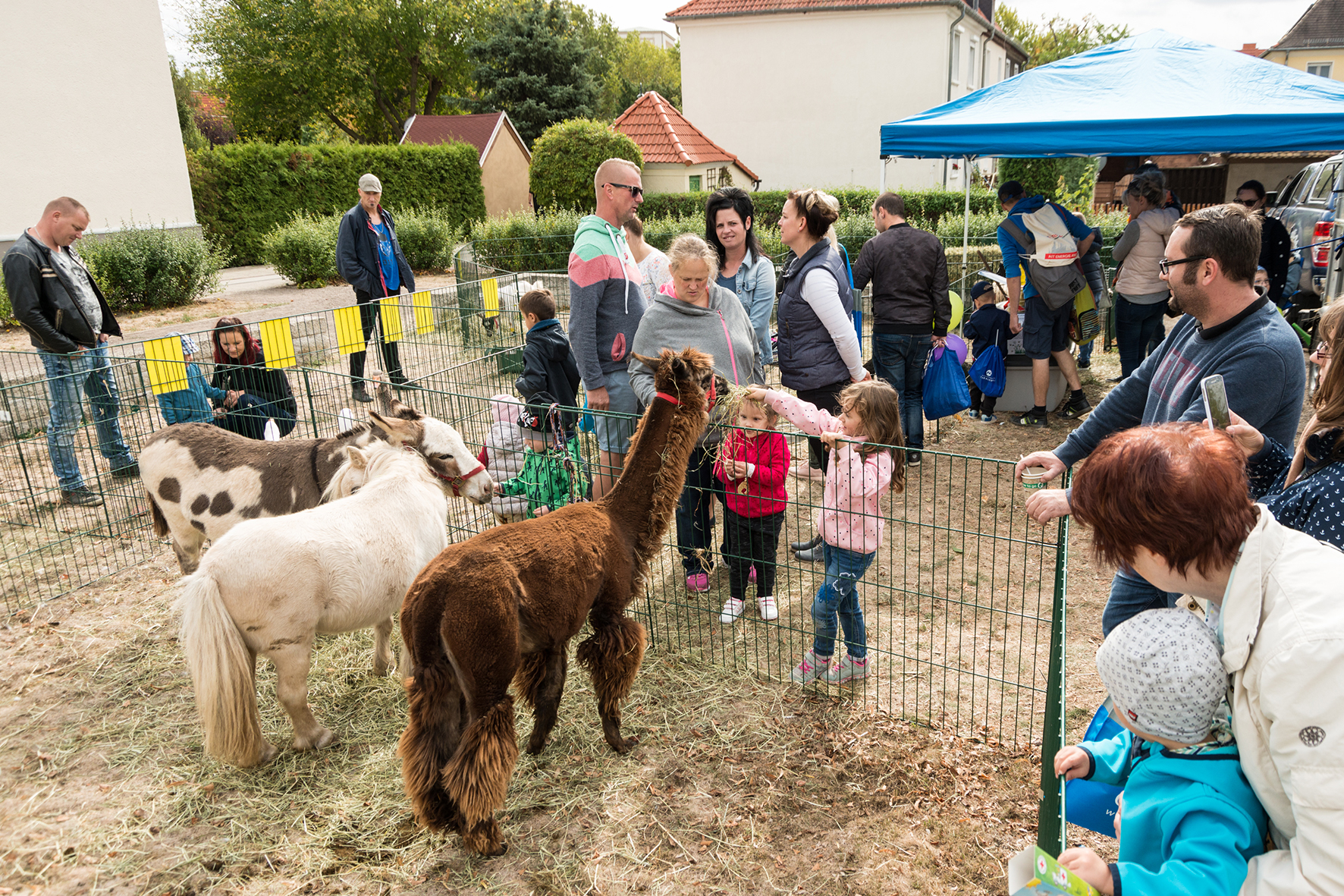 Schnell in Beschlag hatten die Kinder die Riesenhindernisbahn und die Hüpfburgen, die sich über das gesamte Festgelände verteilten, genommen. Stelzenläufer, Kinderschminken, Bastelstraßen, Streichelzoo – für die Kleinen war überall für Abwechslung gesorgt.