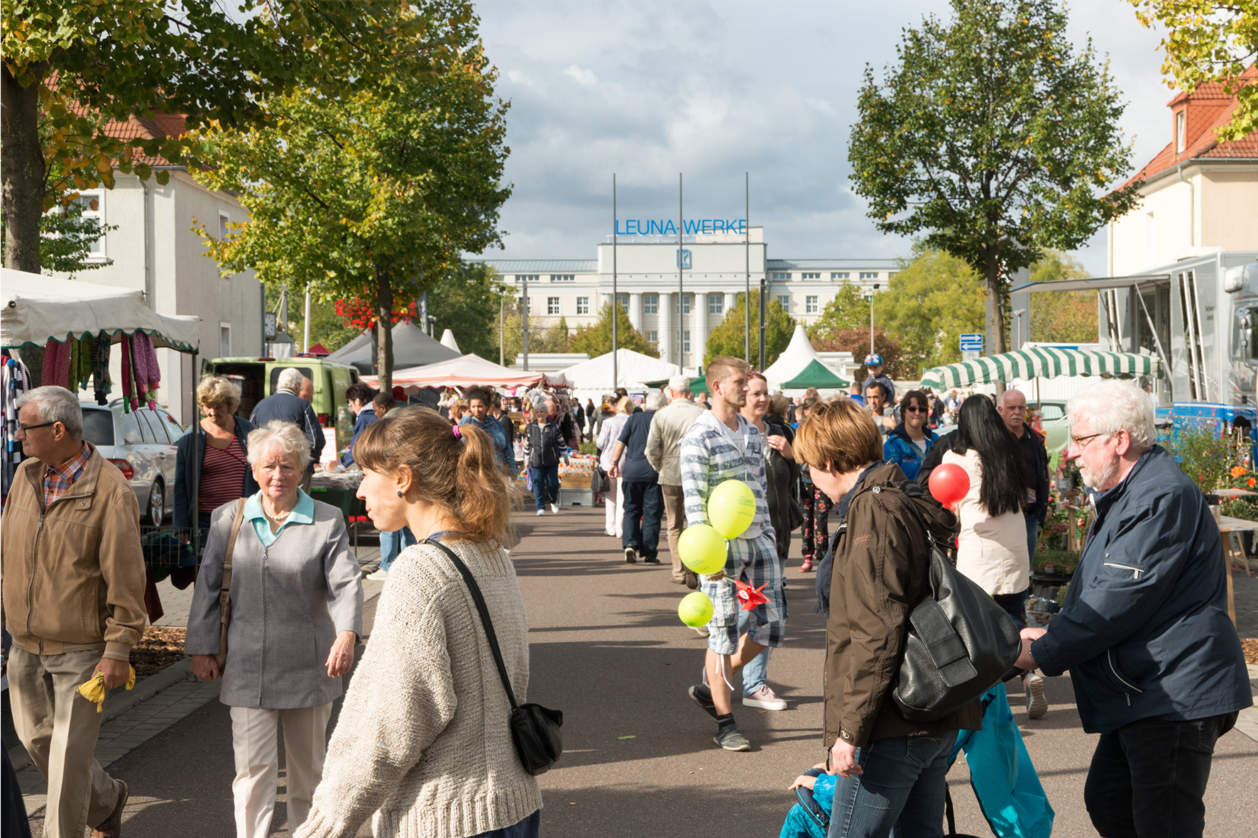 Vier Veranstaltungen an einem Tag lockten bei Sonnenschein am Samstag, 22. September 2018, tausende Besucher rund um den Haupttorplatz nach Leuna.