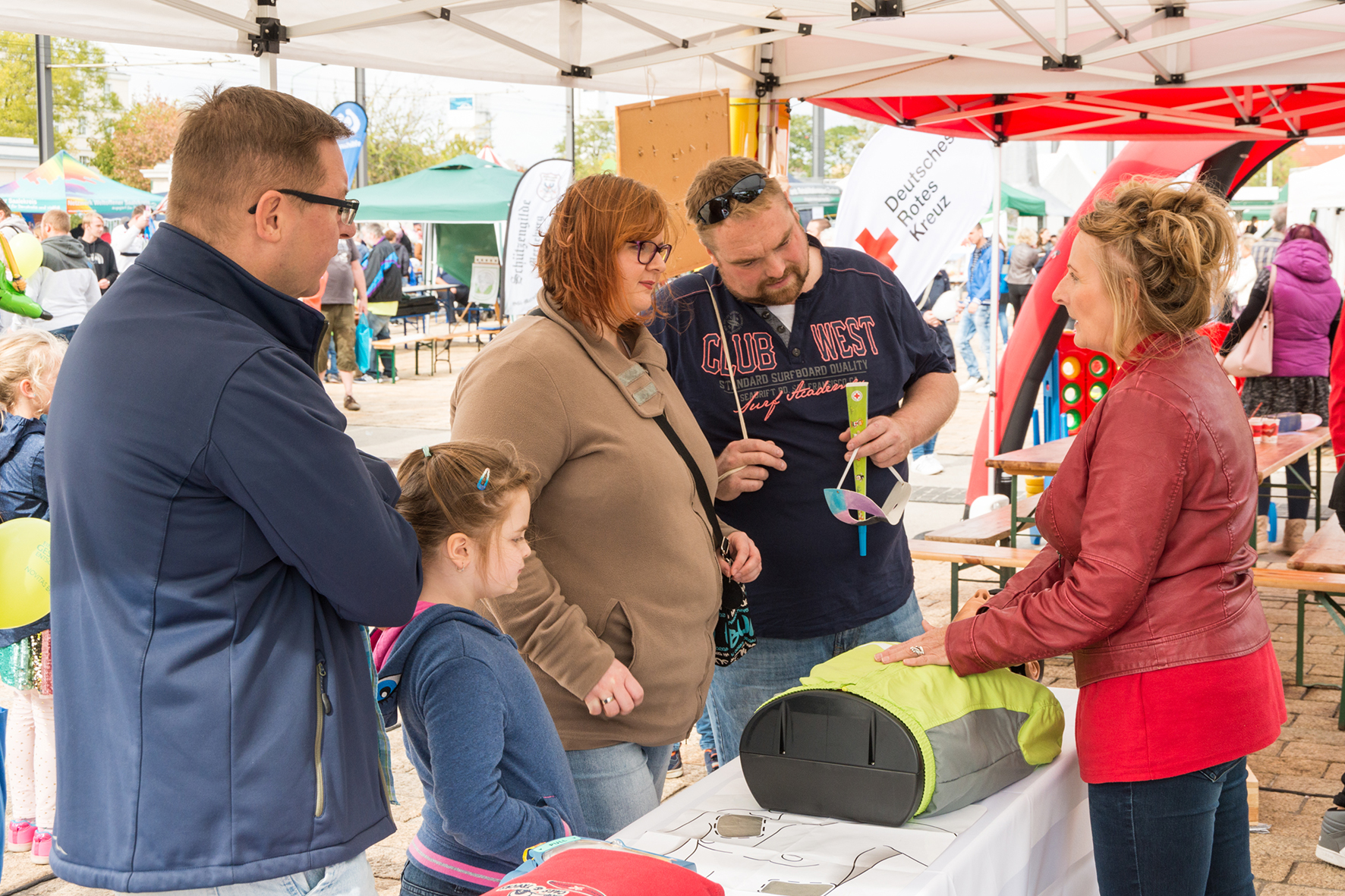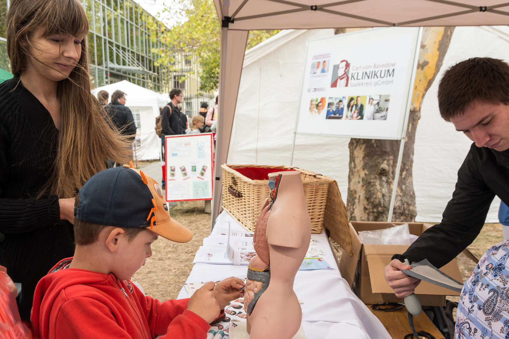 Auf dem Haupttorplatz präsentierten sich über 50 Vereine, zahlreiche Freiwillige und Ehrenamtliche stellten ihre Vereinsarbeit vor und luden ein, direkt einmal in das Vereinsleben hinein zu schnuppern. Für Kinder hielten die Vereine dabei viele Mitmachstationen bereit. Auch im Gesunden Dorf, das sich vor dem Gesundheitszentrum etabliert hatte, konnte nicht nur geschaut werden. Am Stand des Carl-von-Basedow-Klinikums wurde Kindern und Erwachsenen an Modellpuppen das „Innenleben“ des Menschen praktisch vorgeführt, während bei der DLRG Erste-Hilfe-Maßnahmen an einem Dummy erklärt wurden.