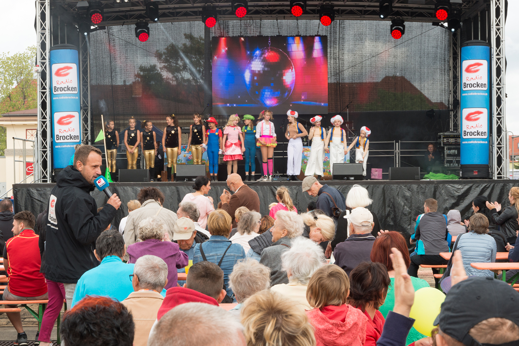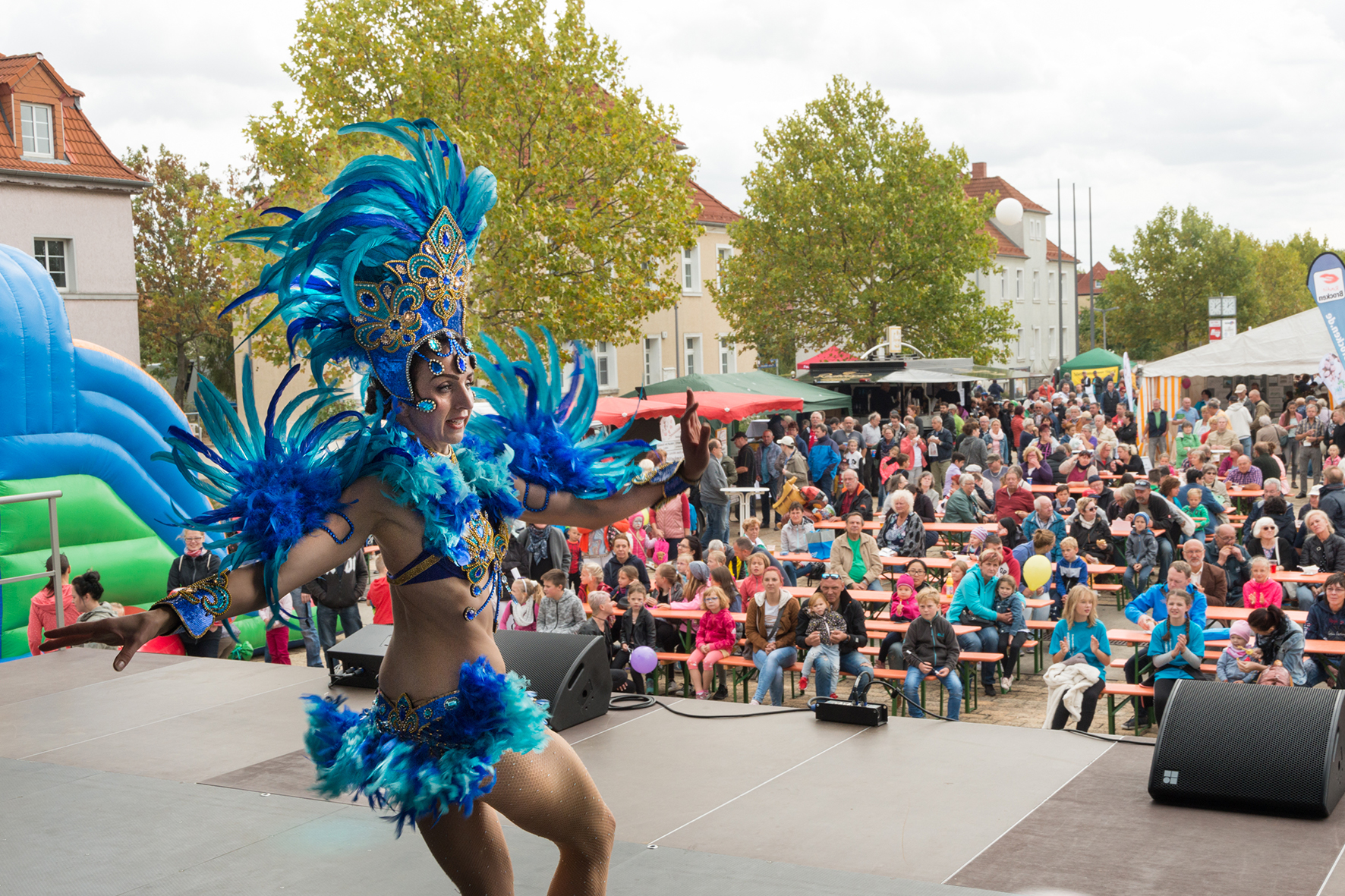 Das Bühnenprogramm, gestaltet von der Radio-Brocken-Band Night Fever, den Krümelfunken des Günthersdorfer Carnevalsclubs, der Tanzgruppe Mücheln, den Free Wolves Lindedancern, dem Jongleur Kelvin Kalvus, Fräulein Hatschi und der Tänzerin Olga, unterhielt den gesamten Tag die Besucher.
