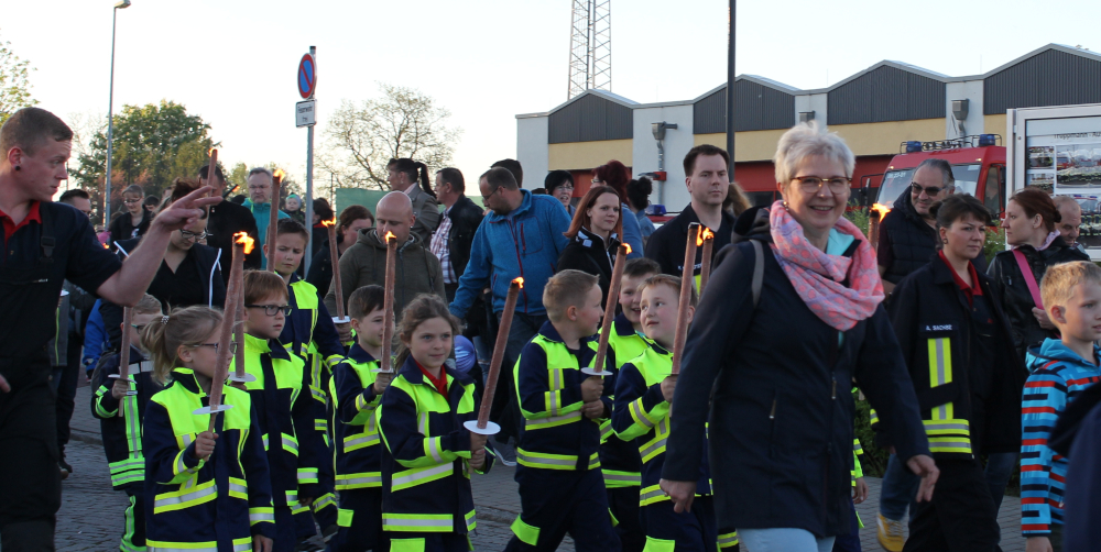 Pünktlich 19.30 Uhr setzte sich am 30. April der Fackelumzug an der Feuerwehr in Leuna in Bewegung.