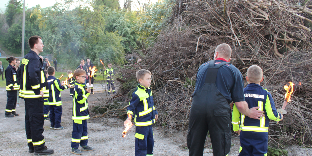 Begleitet wurden die Kinder, die ihre Laternen dabei oder kurz zuvor noch eine Fackel bei den Kameraden der Freiwilligen Feuerwehr Leuna erworben hatten, vom Löschfahrzeug der Feuerwehr und dem Spielmannszug der Freiwilligen Feuerwehr Bad Lauchstädt. Eine knappe halbe Stunde später kam der Zug auf dem Festplatz auf der alten Rollschuhbahn, begleitet von der Bürgermeisterin Dr. Dietlind Hagenau, an der Saale an. Die Kinder waren begeistert, als ihre Fackeln das Walpurgisfeuer entzünden durften. Während die Gäste auf den Platz strömten, begrüßten die Kinder und Jugendlichen der Feuerwehr so manchen Gast persönlich und baten wie in jedem Jahr um eine kleine Spende. Passende Spendendosen in Form von ausrangierten Feuerlöschern warteten auf so manche Gabe. Die Spenden verwenden die jungen Kameradinnen und Kameraden für gemeinsame Freizeitaktivitäten.