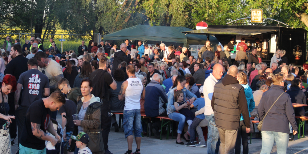 Die milden Temperaturen und der Sonnenschein hatten weit über 1.000 Menschen auf die alte Rollschuhbahn gelockt. Um das leibliche Wohl kümmerten sich die ortsansässigen Gastronomen des MAXX im CCE Kulturhaus, des Sportlerheimes und des griechischen Restaurants Meteora, die alle Hände voll zu tun hatten. So mancher Hungrige mußte auf seine Bratwurst warten, was aber der ausgelassenen Feierstimmung unter den Besuchern des Festes keinen Abbruch tat. Auch die Kameraden der Feuerwehr, die dieses Mal ihre Gulaschkanone mit vielen Portionen Soljanka gefüllt hatten, versorgten die Gäste bis zum späten Abend mit ihrer selbt gekochten Suppe. Die Reste, so die Männer der Feuerwehr, würden am nächsten Tag aufgewärmt noch besser schmecken. Diese wollten sich die Frauen und Männer der Wehr nach getaner Arbeit am Maifeiertag zum Mittag munden lassen, nach dem die Überreste des Festes vom städtischen Bauhof und der Freiwilligen Feuerwehr wieder beräumt wurden.
