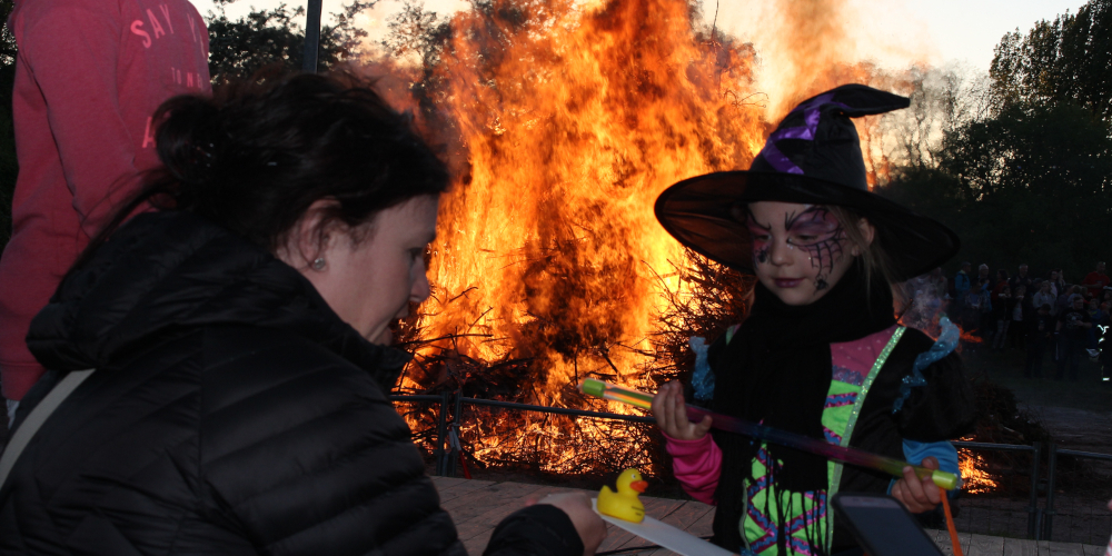 Die Bürgermeisterin stand indessen schon auf der Bühne und begrüßte die Leunaer und ihre Gäste zum Walpurgisfest. Gleich hielt sie nach den Kindern Ausschau, die passend zum Walpurgistag mit Hexenkostümen verkleidet waren. Eine unabhängige Jury hatte die Qual der Wahl, sich für die drei schönsten Kostüme zu entscheiden. Prämiert wurden diese jeweils mit einer Geldwertkarte für die Schwimmhalle. Gewonnen haben die 4jährige Mariella aus Frankleben, die ebenfalls 4jährige Charlotte aus Leuna und der 3jährig Henrik aus Leuna. So können die Kinder, sollte der Sommer nicht die besten Temperaturen versprechen, die Schwimmhalle erkunden. Aber auch für den nächsten Winter sind die Karten in Höhe von 50,- € natürlich gültig.