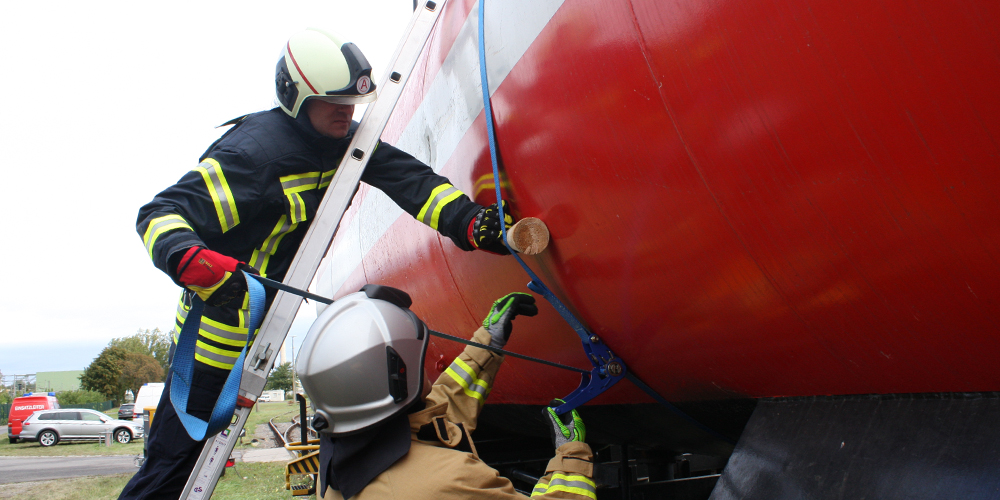 Dabei wurde auf vielfältige Weise das Abdichten von Lecks und das Auffangen von Leckagen trainiert. Die Kameraden der Werkfeuerwehr arbeiteten dabei mit den Kameraden der städtischen Freiwilligen Feuerwehr zusammen.