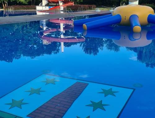 Hier fehlt es an nichts. Das Schwimmer- und Nichtschwimmerbecken hat insgesamt eine Fläche von 3.500 Quadratmetern mit beheiztem Wasser, welches durch eine Solaranlage nie kalt wird und Spaß garantiert. Die Riesenrutsche gilt als die längste eines reinen Freibades im Bundesland und geht mit über mehr als 100m hinab ins Becken. Der Sprung vom 3m oder 5m hohen Turm stellt ebenfalls eine riesen Attraktion dar.