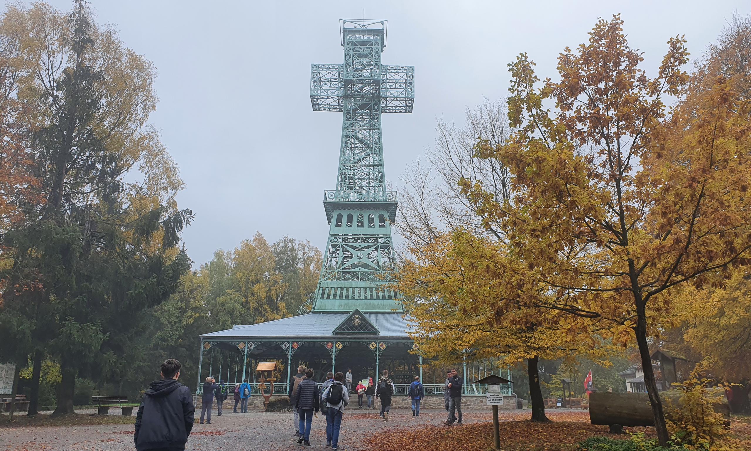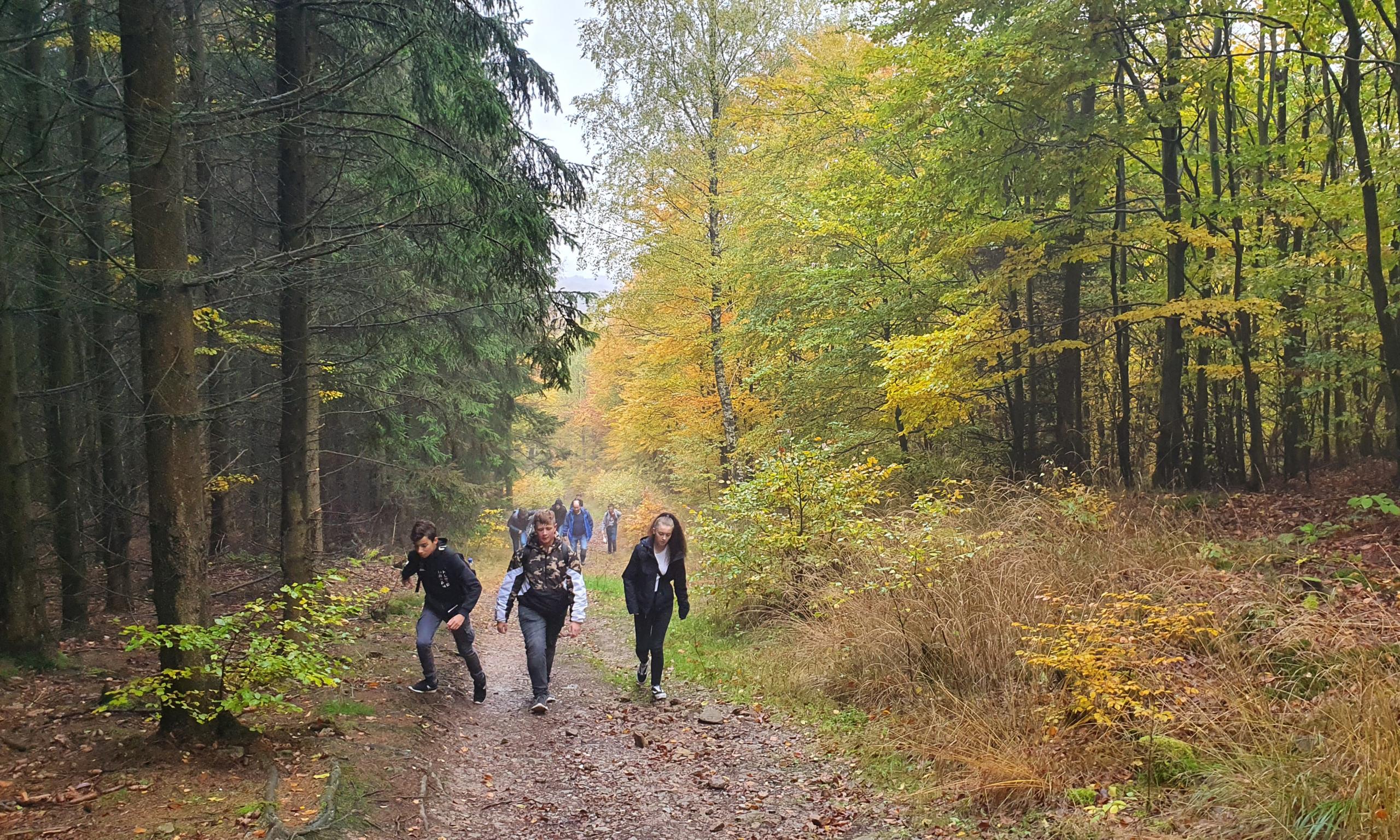 Wahrhaft mystisch ging es dann am Samstag nach dem Frühstück auf in Richtung Stolberg. Das Ziel war eine Wanderung zum Josephskreuz, dem größten eisernen Doppelkreuz der Welt. Auf dem abenteuerlichen Weg hinauf konnten wir eine farbenfrohe Vielfalt an Pilzen entdecken. Die letzten Meter waren vom Nebel umhüllt. Oben angekommen, ging es dann noch auf das Josephskreuz hinauf. Der Himmel war auf unserer Seite und so konnten wir die Landschaft im vollen Umfang genießen. Nach dem Abstieg besichtigten wir das Schloss Stolberg, wo auch hier sich eine traumhafte Aussicht bot. Mit dem Besuch des Freizeitbades Thyragrotte ging unser Tagesausflug zu ende. Nach dem Grillen am Abend konnten nicht nur die Jugendlichen sondern auch die Betreuer noch ihre Kreativität bei dem Spiel Activity demonstrieren.