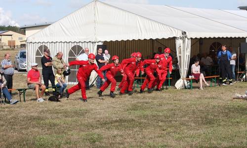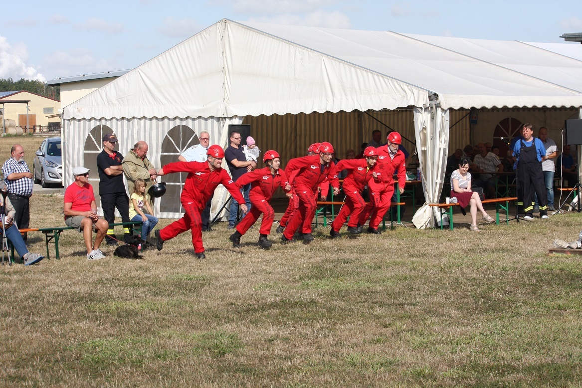 Am 1. September 2018 veranstaltete die Ortsfeuerwehr Friedensdorf ihren traditionellen Oldie-Cup. Diesmal war die Veranstaltung eingebettet in das Heimatfest. Nach den Regeln des Löschangriffs „nass“ konkurrierten fünf Mannschaften um Sieg und Platz. Neben der schnellsten Zeit, waren auch die originellsten Kostüme gefragt. Die Gastgeber traten im Südseelook auf und hatten damit das Publikum auf ihrer Seite. Auch die Friedensdorfer Feuerwehrjugend bekam eine Chance und konnte außer Konkurrenz ihre Fertigkeiten zeigen. Mehr im Stadtanzeiger „September“!