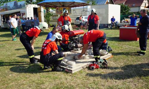 Am letzten August-Wochenende fand, eingebettet in das Heimatfest, der diesjährige OLDIE-CUP in Friedensdorf statt. Nach dem Eröffnungsappell mit kurzen Grußworten vom Ortsbürgermeister, Michael Bedla, von der Bürgermeisterin, Frau Dr. Dietlind Hagenau, und vom Ortswehrleiter, Kamerad Ingo Zintsch, begannen die Vorbereitungsarbeiten auf der Wettkampfbahn. Sechs Mannschaften waren am Start. Die Wettkämpfe waren nicht nur durch Schnelligkeit, sondern speziell durch die Originalität des Outfits und des Auftretens geprägt. (Mehr dazu - einschließlich der Ergebnisse - im SAL September)