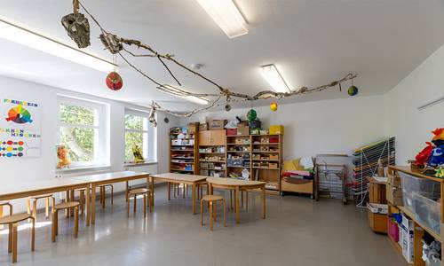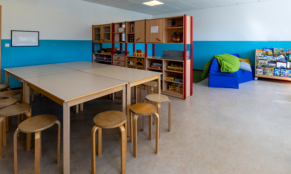 Neben unserer Einrichtung befindet sich die Gemeindehalle „Scheune“, die von uns für verschiedene Aktivitäten genutzt wird. Vor dieser Halle ist unser Dorfteich, in dem sich viele Fischarten und Stockenten wohlfühlen. Im Zentrum dieser Naturoase befindet sich unsere Kindertagesstätte.