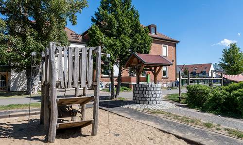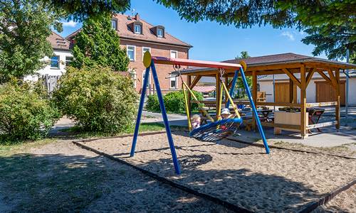 Das schöne alte Herrenhaus des Rittergutes wurde früher als Schule genutzt und wurde 1979 zur Kita umgebaut. Heute spielen, lernen und toben dort ca. 100 Kinder im Alter von 3 - 10 Jahren.
