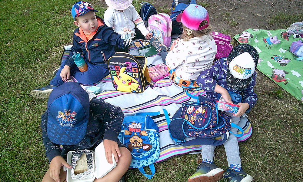 So konnten die KiTa-Kinder am Montag ihre besten Moves beim Disco-Tag zeigen, während die Krippenkinder beim Bewegungsangebot mit dem Schwungtuch und beim Bällewerfen ihren Spaß hatten. Dienstag wechselten wir und die Großen mussten auf der Balancierstrecke und im Parcours ihr Können unter Beweis stellen, während die Kleinsten zu den derzeitigen Hits tanzten und sich über die vielen Seifenblasen aus der Seifenblasenmaschine freuten. Große Freude gab es auch am Mittwoch. Die Kinder durften ihr Lieblingsspielzeug von Zuhause mitbringen. Im Morgenkreis wurden die tollen Spielsachen den anderen Kindern vorgestellt und dann ging es zum gemeinsamen Spiel. Ob Spiderman, Barbie, Ninja oder der große Traktor, alles kam zum Einsatz und wurde von den Freunden bestaunt. Während die Kleinsten im Gruppenraum spielten, hatten die Großen auch ihre Fahrzeuge für die Rollerstrecke mitgebracht und drehten dort ihre Runden. Der Donnerstag stand im Zeichen Wandern und Picknick. Die Häschen und Schäfchen wanderten im Park um den Teich und suchten sich ein Plätzchen im Grünen. Die Pinguine, Mäuse, Erdmännchen und Bienchen durften wieder die Spielwiese von Familie Poppe für ein großes Picknick mit Spiel und Spaß nutzten.